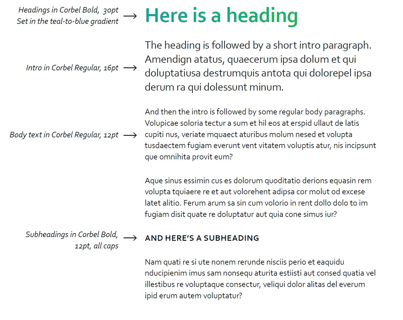 Early on in the process, the Ibis Healthcare team identified the need to base the typography system around a font face that was easily accessible. We landed on Corbel for its clarity, versatility, and its availability across Windows devices.